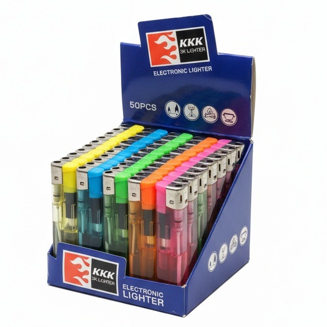 فندک ساده شفاف kkk بسته 50 عددی (کارتنی)